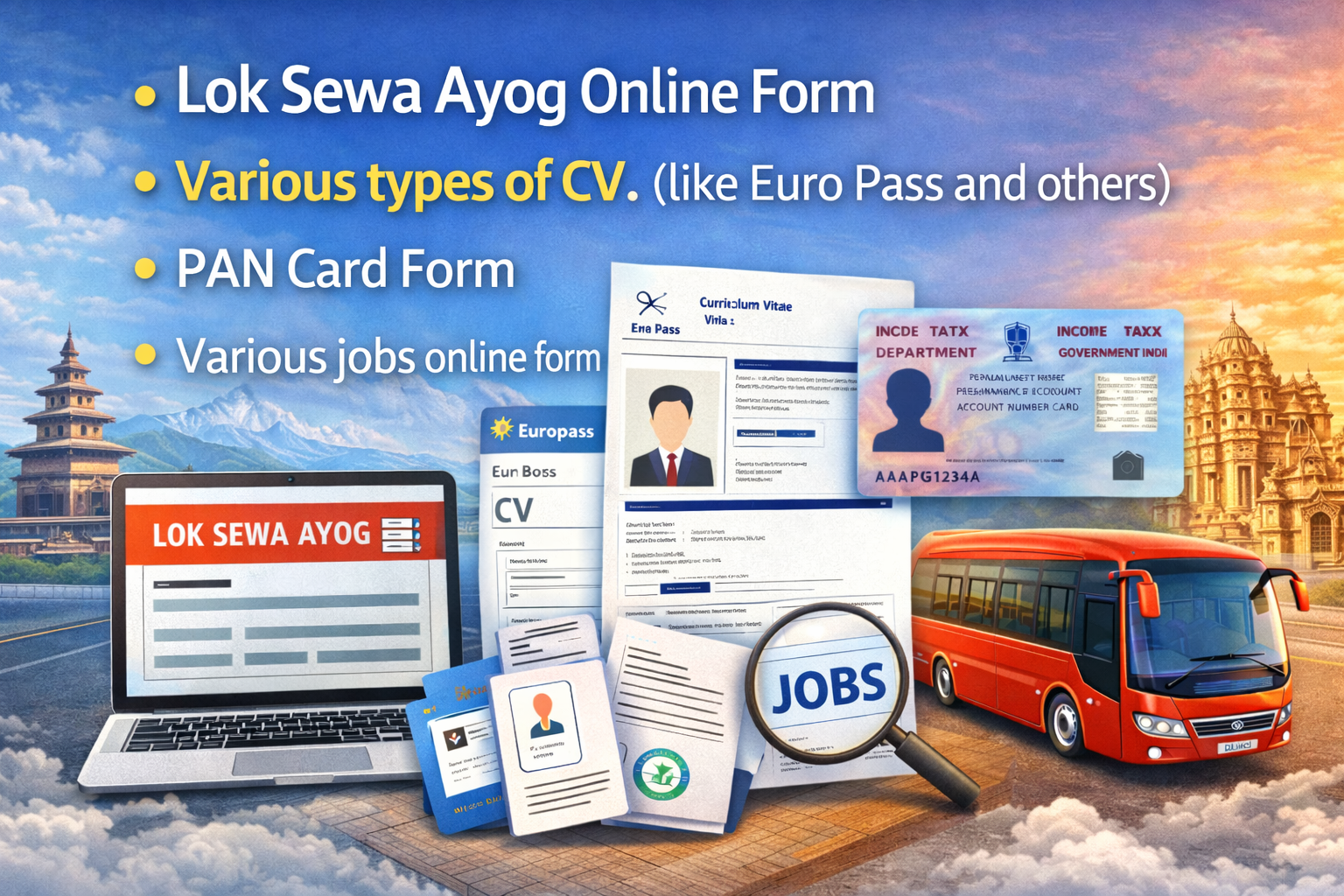 Public Service Commission Online Form Various types of CV. (like Euro Pass and others) PAN Card Form Various jobs online form