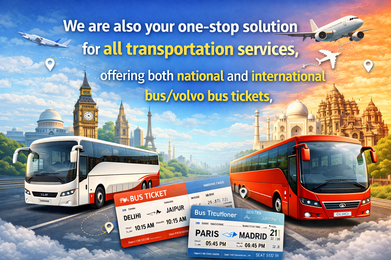 We are also your one-stop solution for all transportation services, offering both national and international bus/volvo bus tickets, as well as train tickets all over India. We are also your one-stop solution for all transportation services, offering both national and international bus/volvo bus tickets, as well as train tickets all over India. Read More